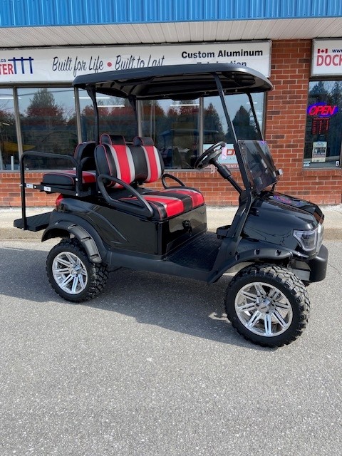 Turn heads with this loaded 2020 Club Car Precedent 4-passenger. Featuring a lift kit, upgraded front & rear seats, upgraded body, tinted windshield, brand new batteries, fender flares, USB ports, and turn signals. Style and function in one sharp black package.